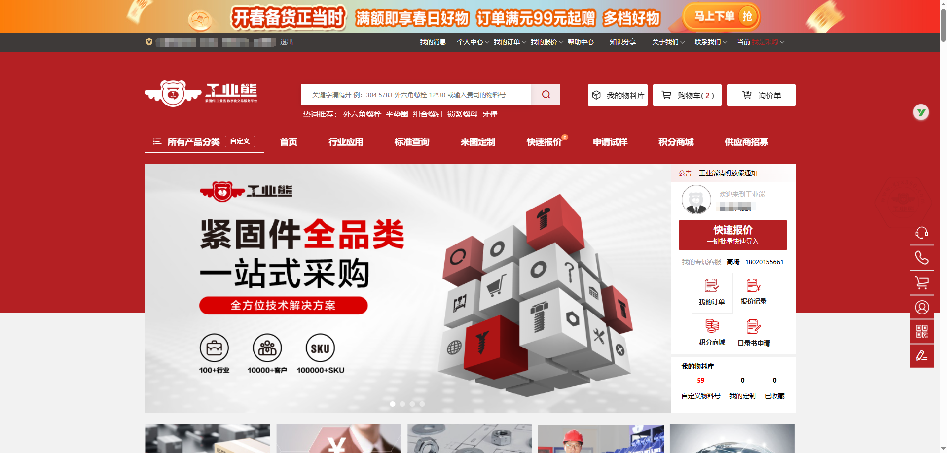 工業(yè)熊長期深耕緊固件垂直領(lǐng)域,圍繞產(chǎn)品供應(yīng)、技術(shù)支持、行業(yè)應(yīng)用、數(shù)字化采購與供應(yīng)鏈協(xié)同,不斷提升平臺綜合服務(wù)能力。通過整合標(biāo)準(zhǔn)件、非標(biāo)件、進口品牌及行業(yè)配套資源,工業(yè)熊持續(xù)為客戶提供更高效、更專業(yè)、更穩(wěn)定的一站式緊固件解決方案。