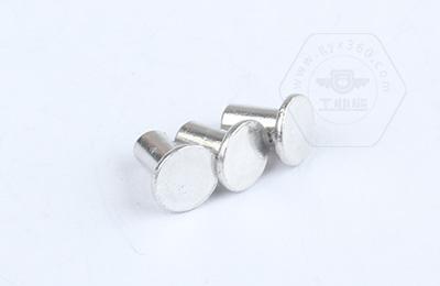 安裝時(shí)尾部空心部分受擠壓向外翻邊,形成卡扣,固定連接件。 扁圓頭半空心鉚釘主要用于金屬薄板或皮革、帆布、木料等非金屬材料的鉚接場合。